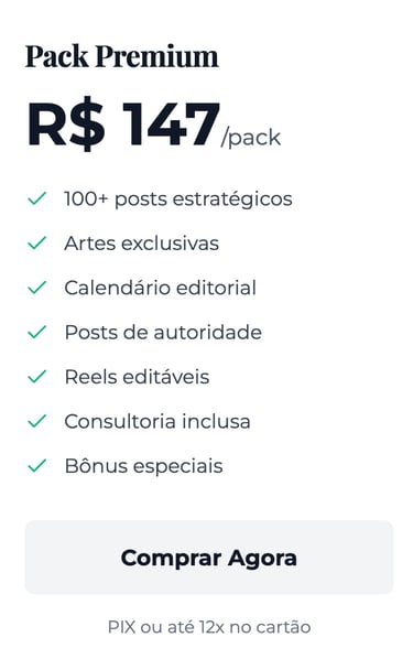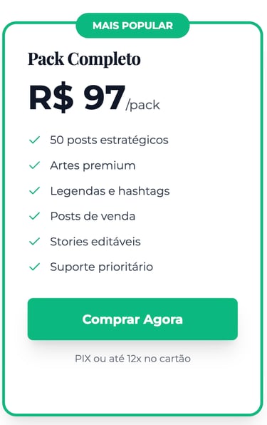 Economizei tempo e ganhei mais clientes com posts prontos e estratégicos.